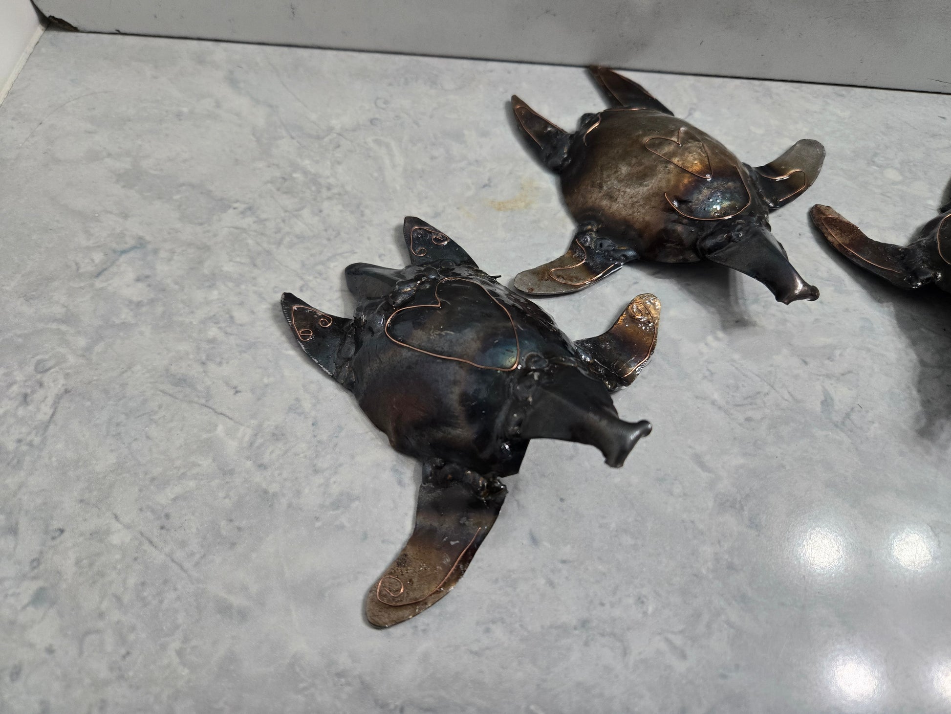 These adorable handcrafted metal turtles, are the perfect gift for your sea creature lovers out there. Made from 20ga steel and colored using heat and the natural properties of metal, each turtle is crafted with care And it is a unique, one of a kind piece